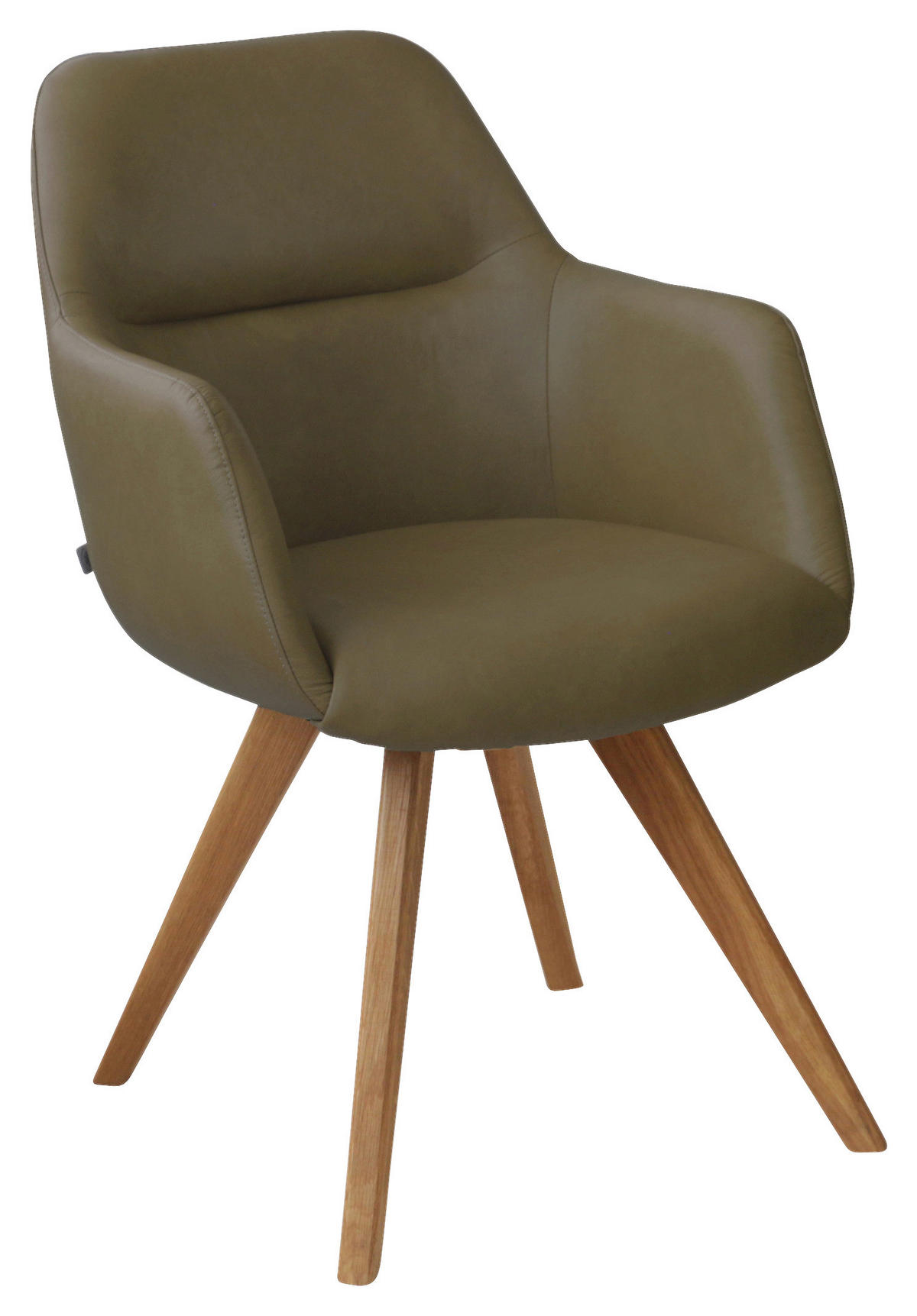 ARMLEHNSTUHL  Lederauswahl, Stoffauswahl, Typenauswahl, Gestellauswahl, Sitzfläche 180° drehbar, automatische Rückholfunktion  Echtleder  - Eichefarben/Grün, Design, Leder/Holz (57/85,5/65cm) - Voleo