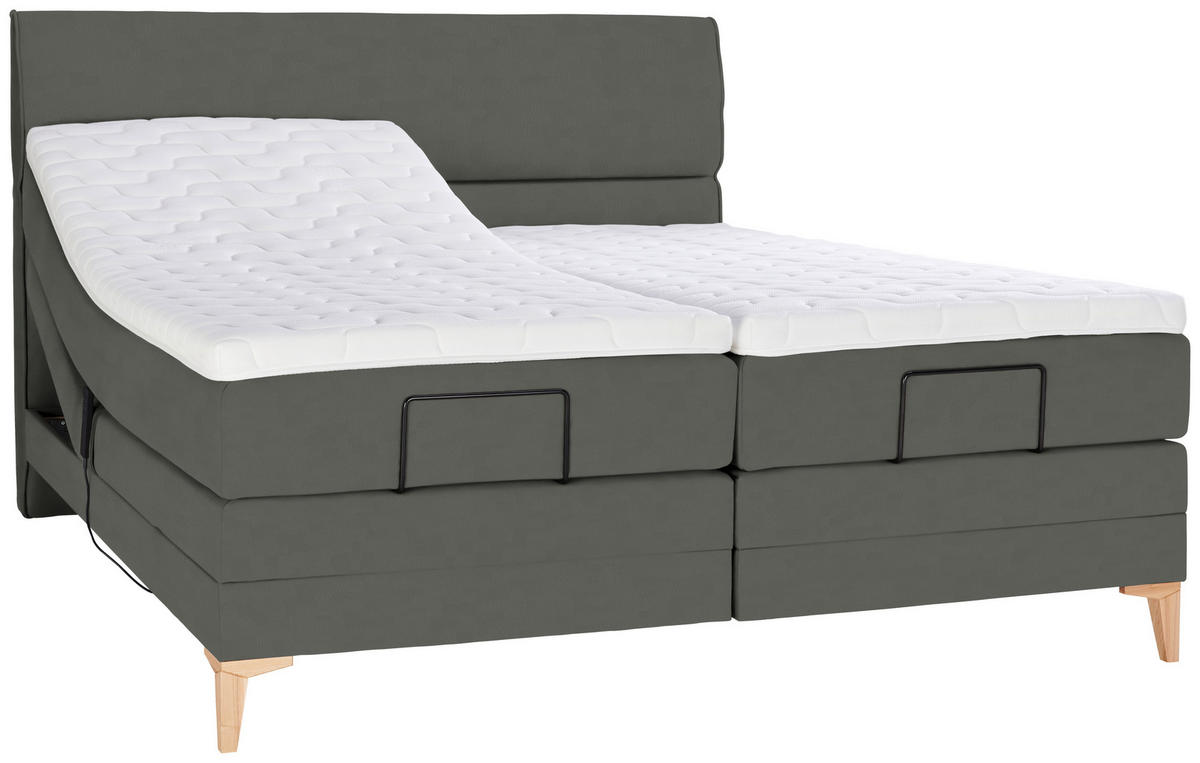 Eichefarben, welche luftige Bodenfreiheit schaffen. Erlauben Sie sich Luxus im Alltag – mit diesem Boxspringbett (ca. 160 x 200 cm) in Grau inklusive Matratze, Topper,