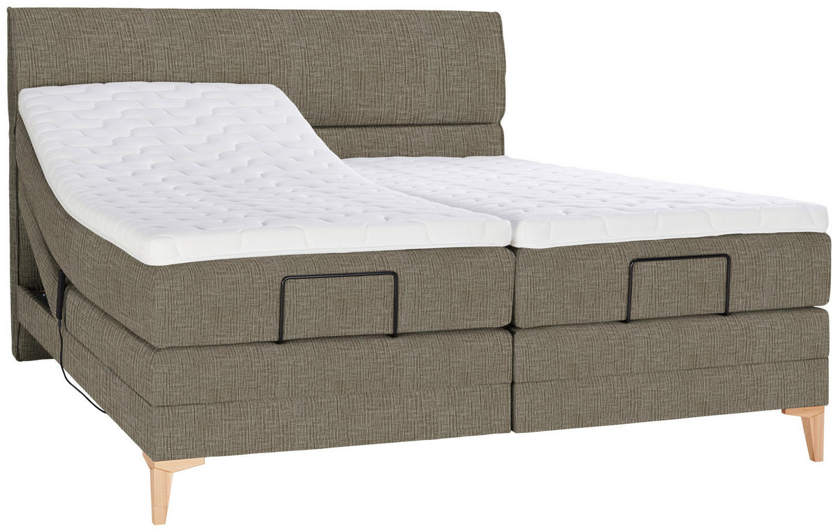 Eichefarben, welche luftige Bodenfreiheit schaffen. Genießen Sie pure Gemütlichkeit in diesem Boxspringbett (ca. 160 x 200 cm) in Hellbraun inklusive Matratze, Topper,