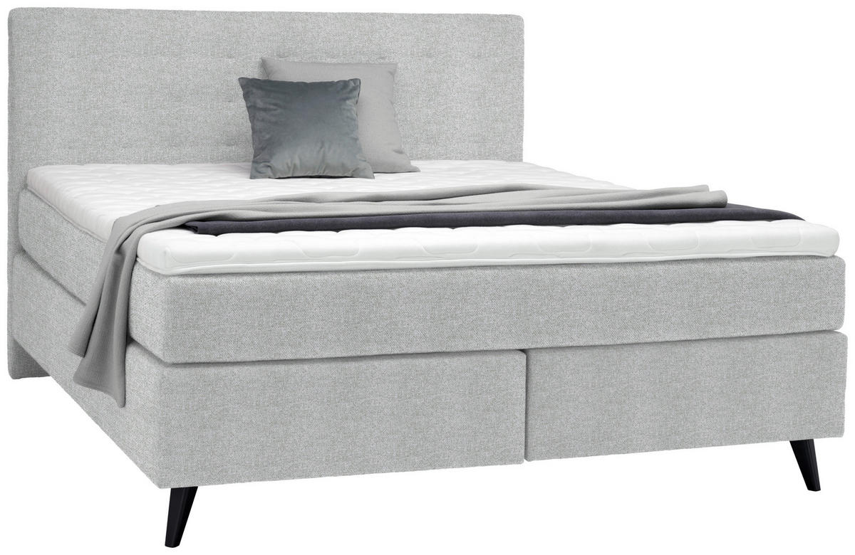 Schwarz sehen stylish aus und gewährleisten gleichzeitig einen festen Stand. Einschlafen, entspannen, genießen – mit diesem Boxspringbett (ca. 200 x 200 cm) in Hellgrau inklusive Matratzen, Topper und gepolstertem Kopfteil, das zur Oase der Ruhe wird!