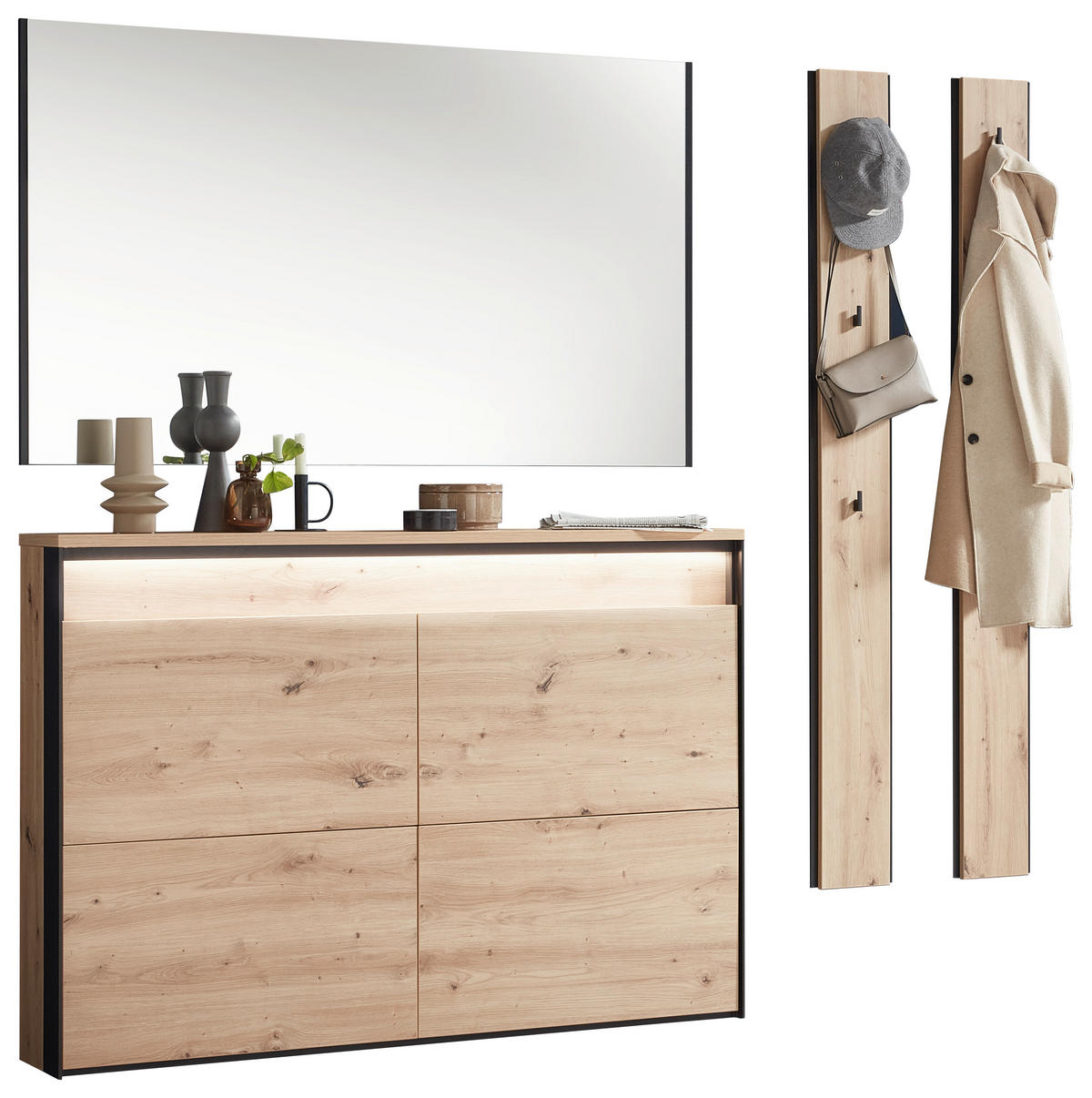 Garderobe (4-teilig) mit LED-Beleuchtung: trendig-rustikale Ästhetik