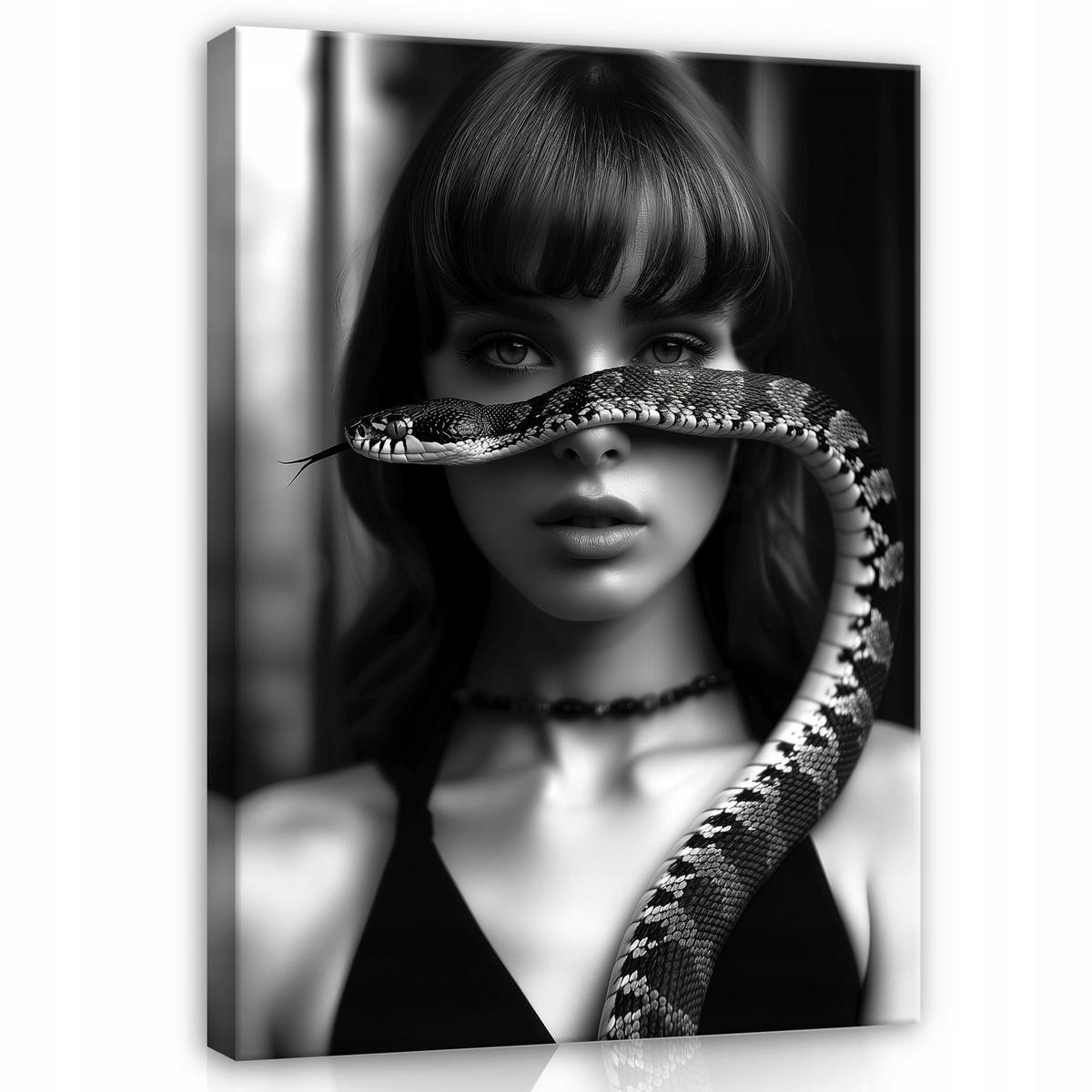 Wallarena BILDER auf Leinwand Frau Schlange Schwarz und Weiß 100x70