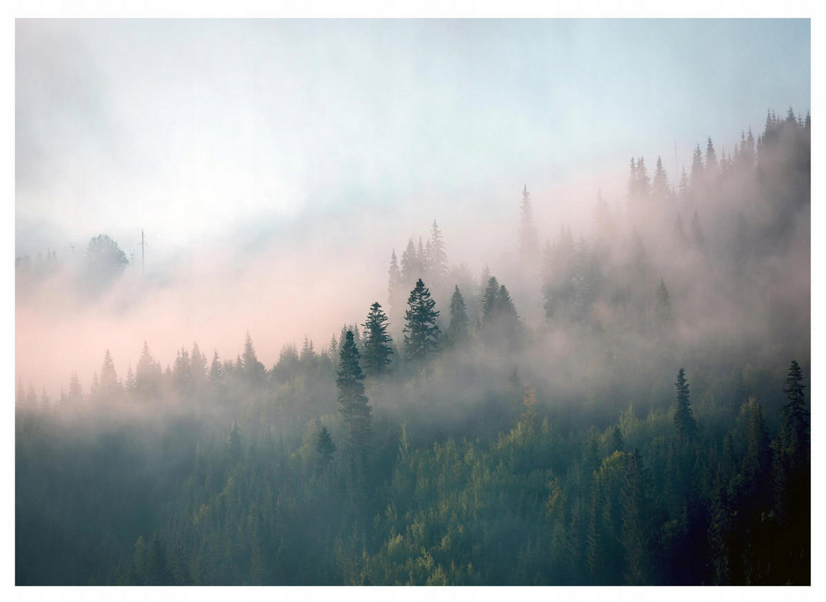 FOTOTAPETE Wald im Nebel Vliestapete Tapete 300x210 - Multicolor, Papier (300/210cm) - Wallarena