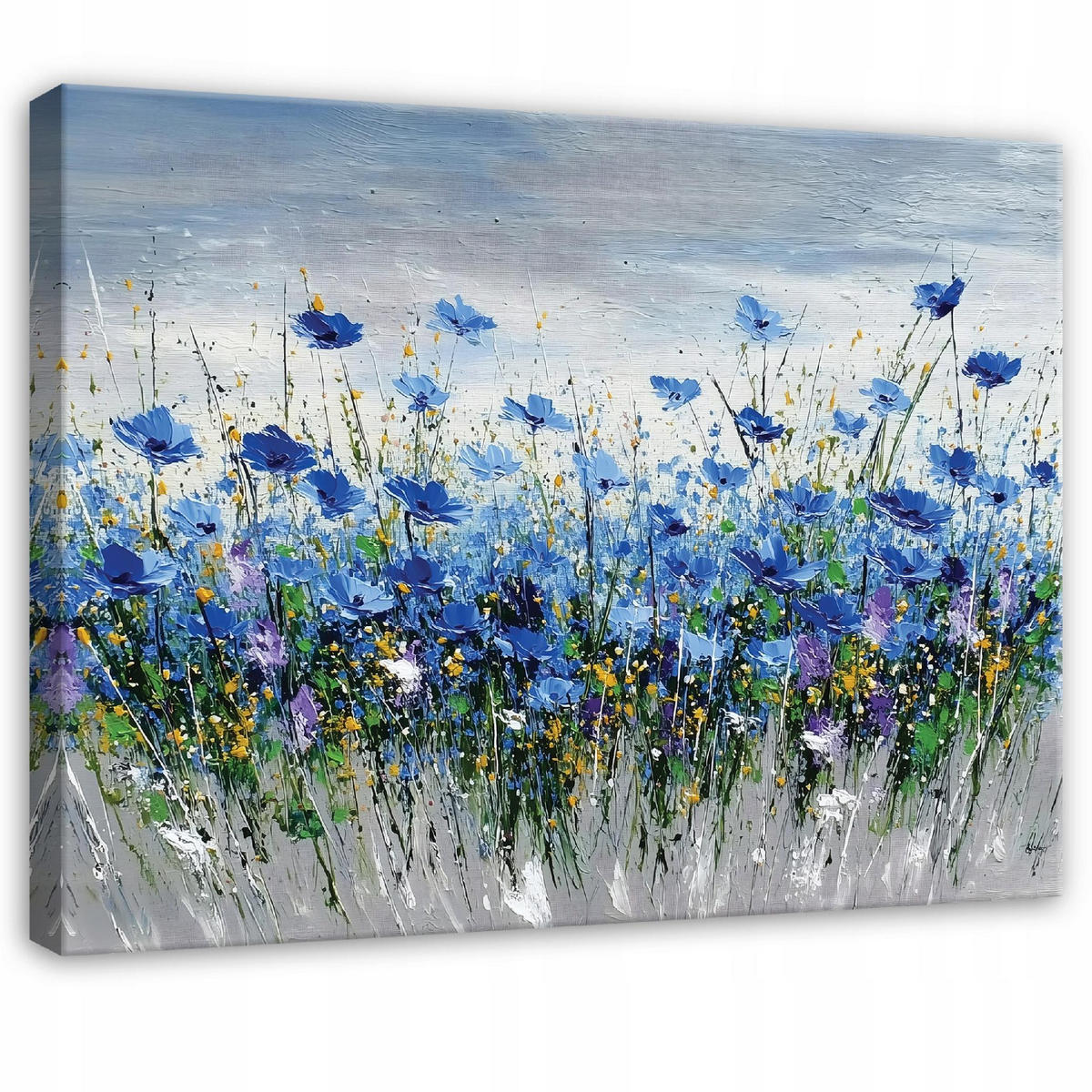 Leinwandbild Blumen Aquarell Blau 100x70 cm