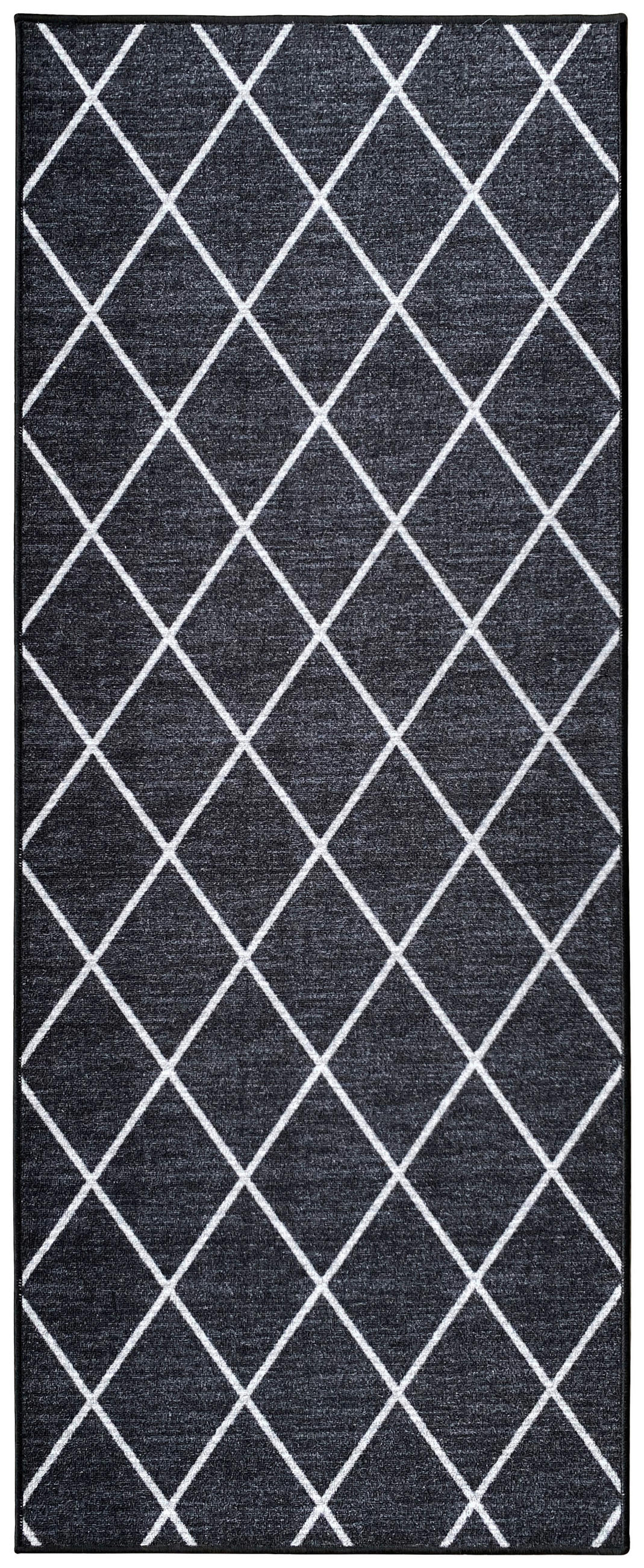 Dieser getuftete Webteppich (rechteckig) in Schwarz und Weiß setzt Ihr Mobiliar ca. 80 x 150 cm (B x L) groß in Szene. Der mehrfarbige Look schenkt dem Bodenaccessoire aus der Serie "Cosenza" eine unvergleichliche Wirkung. Eine beruhigende Stimmung entsteht durch das Rauten-Dekor, das einem geometrischen Ansatz folgt.