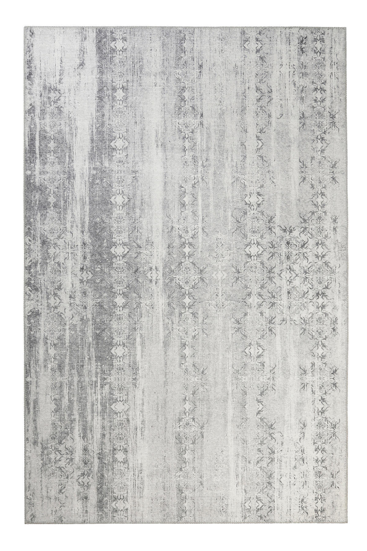 Der ESPRIT Webteppich "Alaska" in Grau bringt Vintage-Charme in Ihr Interieur. Unter dem Wohnzimmertisch oder im Essbereich begeistert der Bodenschmuck mit seiner individuellen Optik. Ein Dessin in Weiß und Grau macht ihn vielseitig kombinierbar. Das angedeutete Ornament-Muster erhält durch den Used-Look der Chenille-Oberfläche einen nostalgischen Touch.