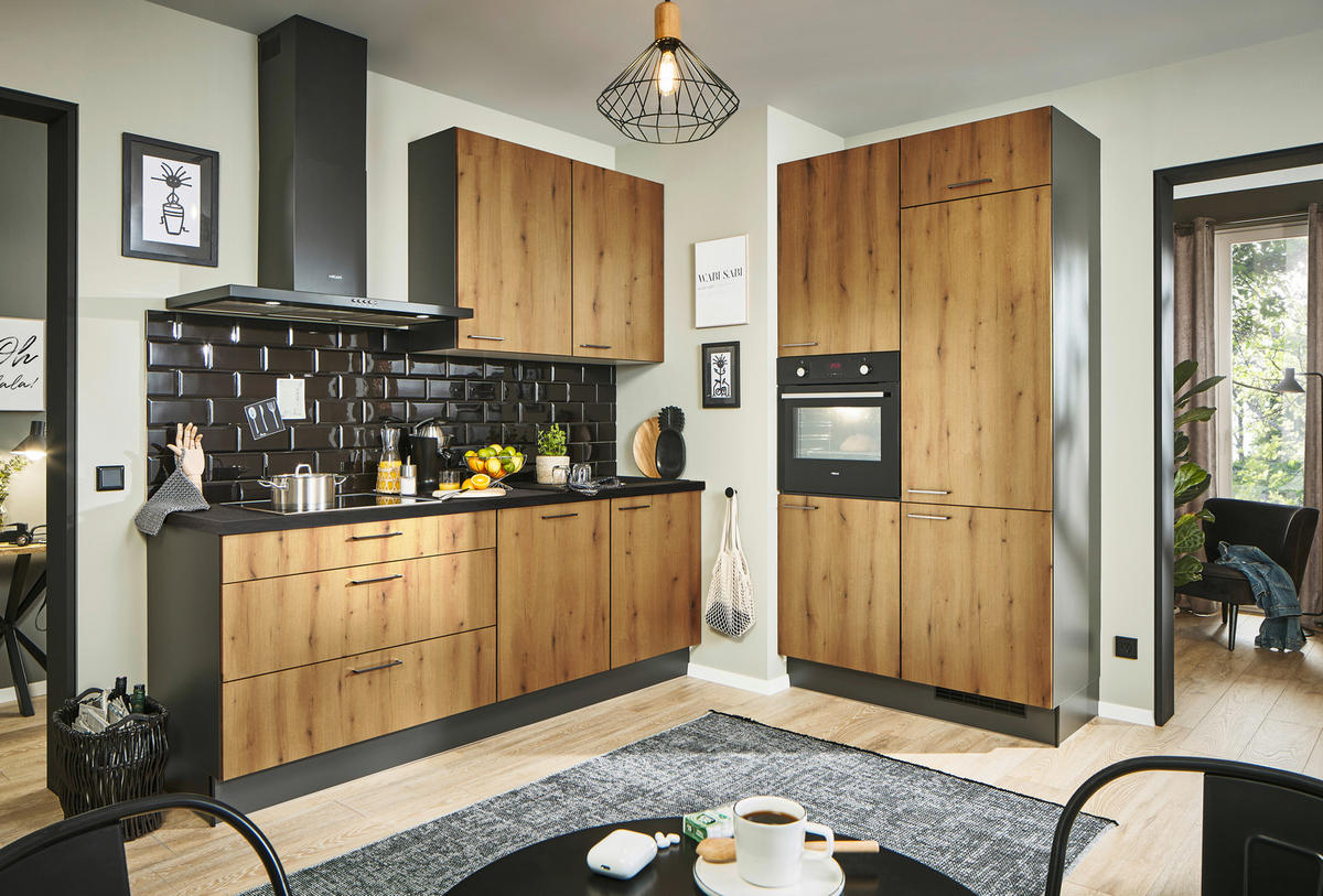 Xora ECKKÜCHE 220/120 cm in Graphitfarben, Schwarz, Eichefarben