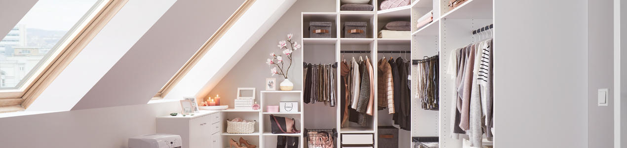 Ein zusätzlicher Pluspunkt des Schranksystems: Es fügt sich optimal in den Grundriss der Wohnung ein, da Breite, Höhe und Tiefe oft variabel sind. Und bei der Optik lassen sich die Lieblingsdekore im Nu zum perfekten Look zusammenfügen – so entsteht ein echtes Unikat.