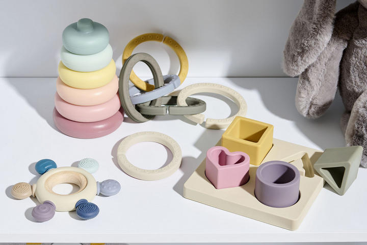 - Schon bei den Kleinsten hoch im Kurs steht Babyspielzeug, das die Wahrnehmung und den Tastsinn fördert – von der Rassel bis zum Spielbogen.
