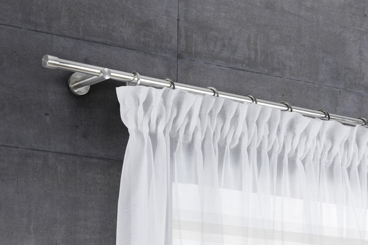 Lieber eine Gardinenstange ohne Bohren? Sogenannte Teleskopstangen sind Vorhangstangen, die einfach über ihre verstellbare Länge zwischen Wände geklemmt werden, dadurch keine Bohrlöcher hinterlassen und Putz oder Tapete schonen. Das gelingt natürlich nur, wenn die Vorhangstange zwischen zwei Druckpunkte gespannt werden kann. Eine andere Möglichkeit, eine Gardinenstange ohne Bohren anzubringen, ist die Halterung der Vorhangstange mit einem Montagekleber anzukleben. Nach dem Aushärten kann der Vorhang aufgefädelt und die Gardinenstange aufgehängt werden. Tipp: Es ist wichtig, dass die Wand sauber von Rückständen befreit wird, damit die Halterungen auch haften bleiben. Wer lieber „alles auf Schiene“ hat, kann sich natürlich auch für Vorhangschienen inklusive passendem Vorhangzubehör entscheiden. Da sie an der Raumdecke angebracht werden, stehen die Vorhänge selbst dabei maximal im Mittelpunkt. Apropos Stoff: Auch bei der Wahl der passenden Vorhänge zur Vorhangstange gibt es eine große Auswahl an Stoffen und Designs.