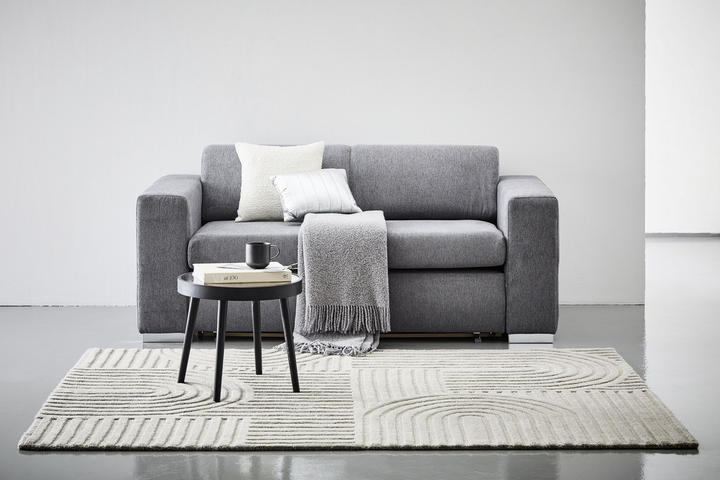 - Bereiche schaffen: Abgesehen davon, dass das Wohnzimmer für viele verschiedene Aktivitäten genutzt wird, grenzt es häufig auch an andere Bereiche wie Küche und Essbereich. Mit gezielter Beleuchtung kann man eine sanfte Trennung schaffen. Auch Teppiche helfen, Möbel in Gruppen zu arrangieren. Raumtrenner sind natürlich der Klassiker, wobei niedrige Möbel weniger wuchtig wirken.